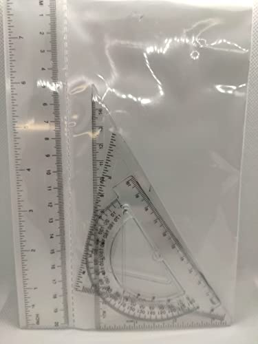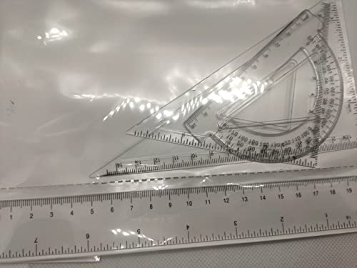 Set di Geometria per scuola e lavoro | 4 pezzi | Righello 20 cm Goniometro e due squadrette