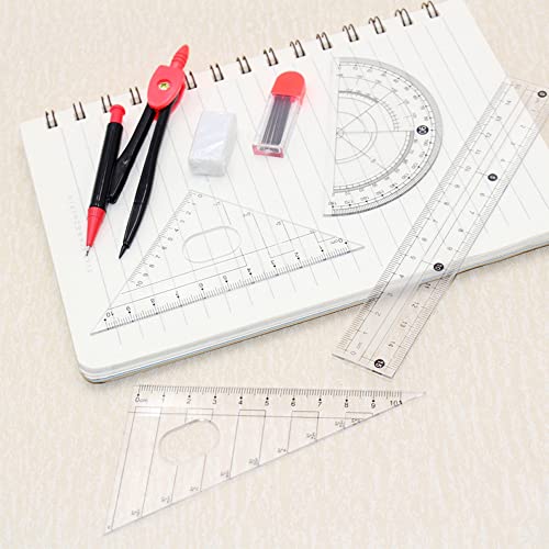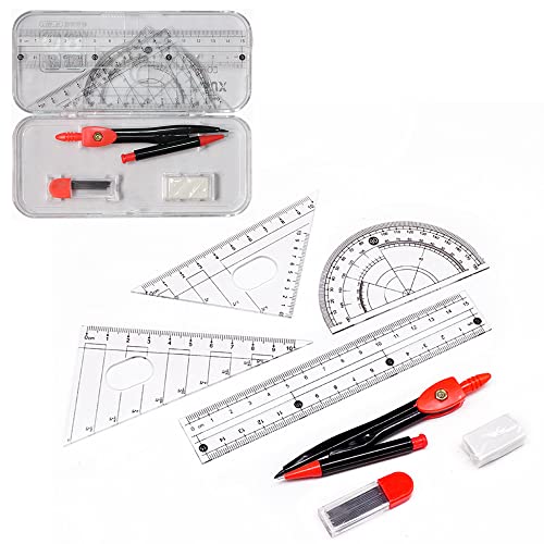 Set di Geometria per la Scuola, Set Righello da Disegno, Righello per Studenti Strumenti, Set Bussola Geometrica, 7 Pezzi, con Scatola di Plastica, con 4 Righelli, 1 Bussola, 1 Gomma, 1 Mina di Matita