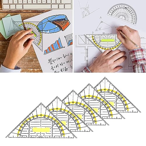 Geometria Triangolo,Squadra geometrica,Triangolo Geodico in Plastica,Squadra da disegno,squadrette nautiche,Squadra Goniometro,per scuola e ufficio,Giallo,5pcs