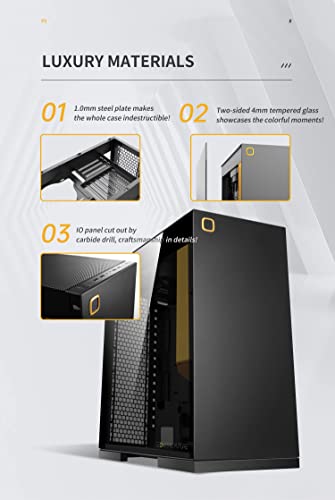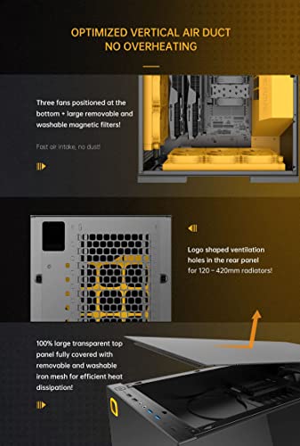 【Design del condotto dell'aria verticale】 Design del condotto dell'aria verticale ottimizzato, flusso d'aria fredda di aspirazione dal basso, calore di scarico verso l'alto, Particolarmente utile per la dissipazione del calore delle schede grafiche, L'esclusivo canale di cablaggio superiore rende l'interno più pulito e ordinato.