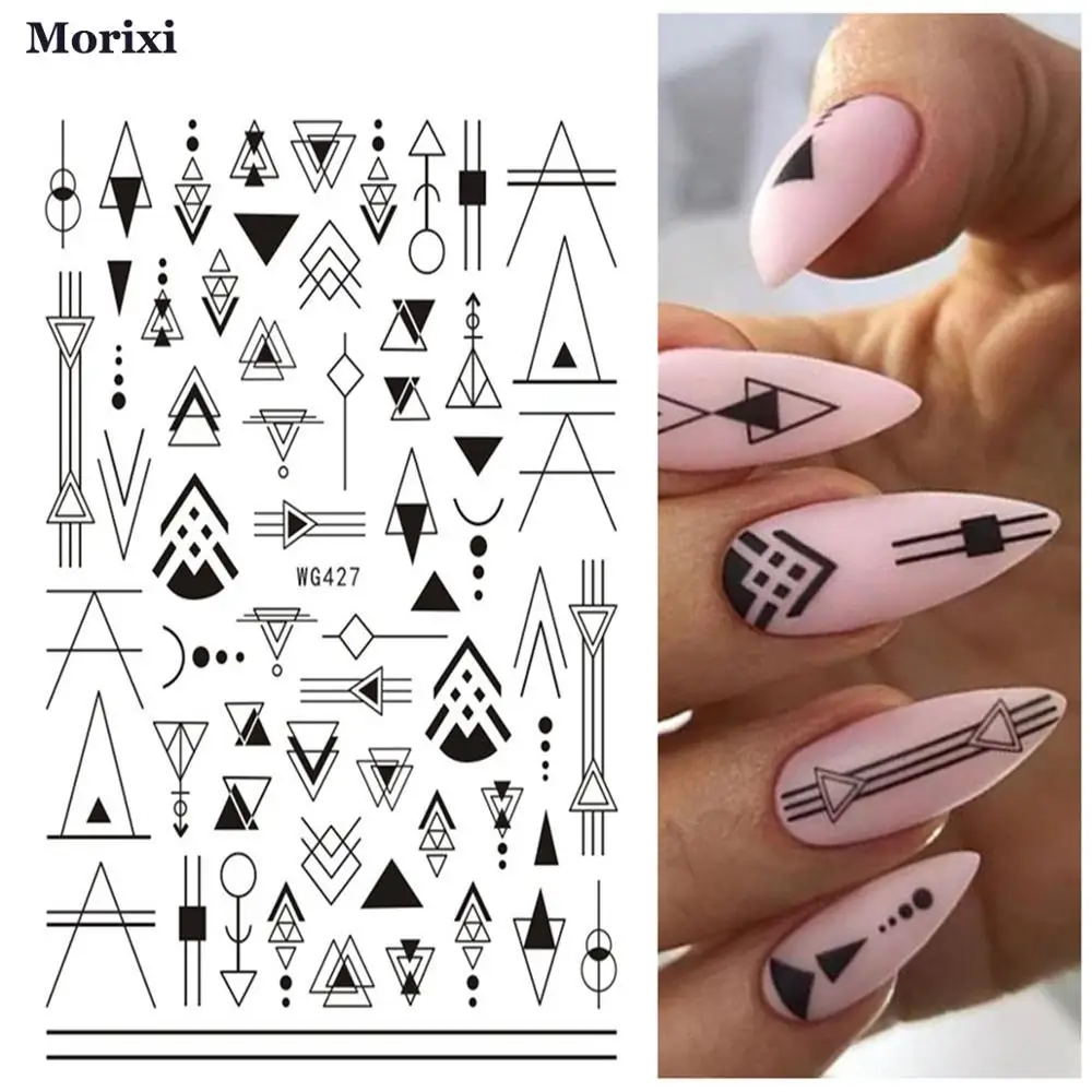 Geometric nail art sticker black silver colors butterfly leaf flora image manicure decoration transparent nail art foils WG042