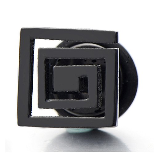 Geometrico Nero Spirale, Orecchini da Uomo, Orecchini a Lobo, Acciaio Inossidabile, 2 Pezzi