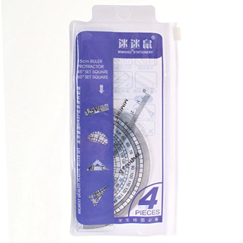 4 pezzi Set di Math - 4 in 1 strumento geometria contiene un 15,2 cm/15 cm righello, goniometro, 2 x Triangolo righello (45 e 60 gradi)