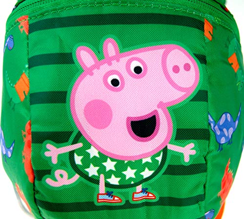 Prodotto con licenza ufficiale. Questo autentico zaino progettato ha un sorprendente tema verde clolour su uno sfondo pieno di immagini di George Pig e il suo Dino. Un grande design classico e senza tempo amato da tutti i Peppa Pig.