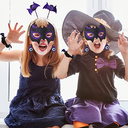 Geosar 5 Accessori per Feste in Costume di Halloween, 1 Elastico per Pipistrello 1 Fascia Pipistrello 1 Paio Orecchini a Bulbo Oculare 1 Maschera Occhi Pipistrello 1 Bacchetta Magica con Paillettes