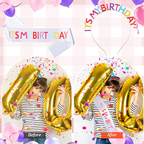 Geosar Tiara per la Festeggiata e Fascia di Compleanno Colore Arcobaleno con Scritta It's My Birthday per Ragazza Fascia in Raso e Cerchietto per Decorazioni di Feste
