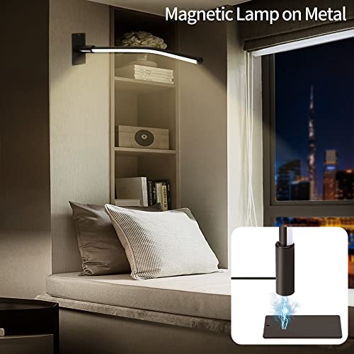 GEPROSMA Metallo Touch Lampada da Comodino Led,Moderna Minimalista Design Lampada Tavolo Camera da Letto, 3 Colori 9 Luminosità,Base Magnetica,Luce Scrivania Soggiorno Casa Ufficio,Nero,Alto 44cm