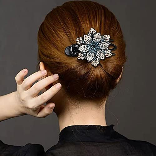 GEQIAN - Fermaglio per capelli antiscivolo con fiore di strass e strass, portatile, alla moda, accessorio per capelli