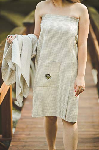 Ger3as, Kilt da Sauna da Donna, 75% Lino, 25% Cotone, Asciugamano da Sauna con Elastico e Chiusure a Strappo, Panno in Cotone, Asciugamano per Il Benessere ad Asciugatura Rapida, 85 x 145 cm