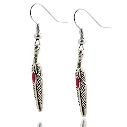 Geralin Gioielli Orecchini da donna in argento con piuma indiana, stile vintage