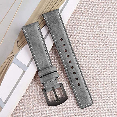GerbGorb Cinturino in Pelle 20mm, Cinturini Compatible con Amazfit Bip/Bip Lite, Amazfit GTS/GTR 42mm, Huawei Watch GT 2 42mm, Samsung Galaxy Watch Active/Active2, Grigia + Fibbia Nera