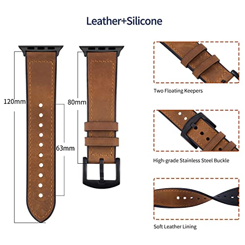 GerbGorb Cinturino in Pelle e Silicone Compatibile con Apple Watch 42mm/44mm, Cinturini per Apple Watch Serie 5/4/3/2/1, Argento 42mm/44mm