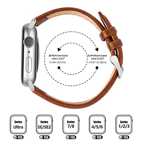 GerbGorb Cinturino Pelle Vintage Compatibile per Apple Watch 45mm/44mm/49mm/42mm, Apple Watch Band per iWatch Serie 8 7 6 5 4 3 2 1, Apple Watch SE/ SE 2/ Ultra, Marrone