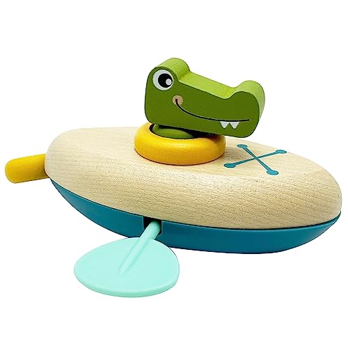 GERILEO Coccodrillo Acquatici in Legno Montessori per Bimbo e Bimba - 14 cm - Set di Giochi per Il Bagno, la Piscina e la Spiaggia - Bambole per Nuotare in Canoa - Regali per Bambini (Coccodrillo)