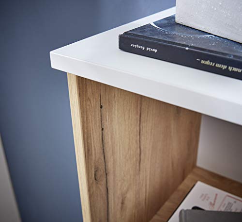 Materiale: truciolato rivestito in resina melamminica, decorazione: bianco/blu navy in finto rovere