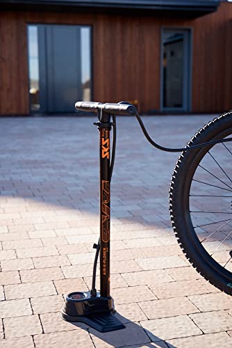 Ambito di fornitura: SKS GERMANY AIR-X-PLORER DIGI 10.0 pompa da pavimento, pompa per biciclette (accessorio per biciclette con manometro digitale a LED e testa della valvola MULTI VALVE, impugnatura soft-touch e lungo tubo ad alta pressione), nero.