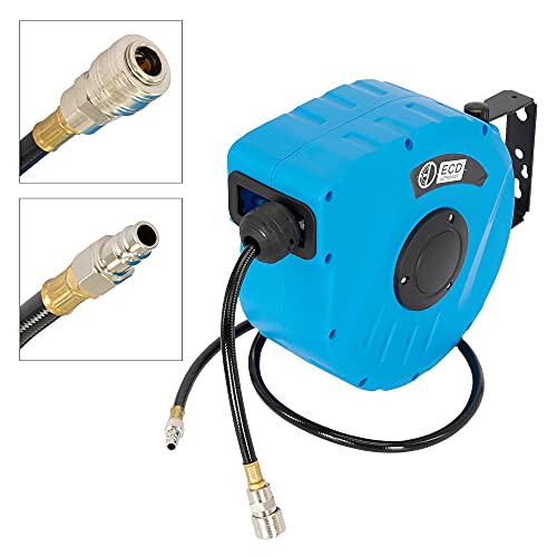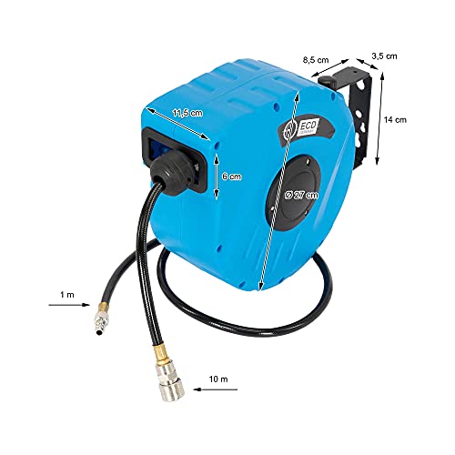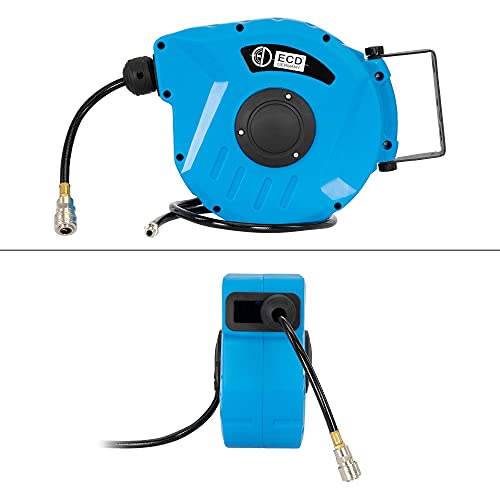 ECD Germany Avvolgitubo Automatico 10 m Attacco Connessione 1/4" Pressione d'Esercizio 8 bar Diametro Interno 8 mm Arrotolatore Riavvolgimento Tubo per Aria Compressa Portatile Montaggio a Parete Muro