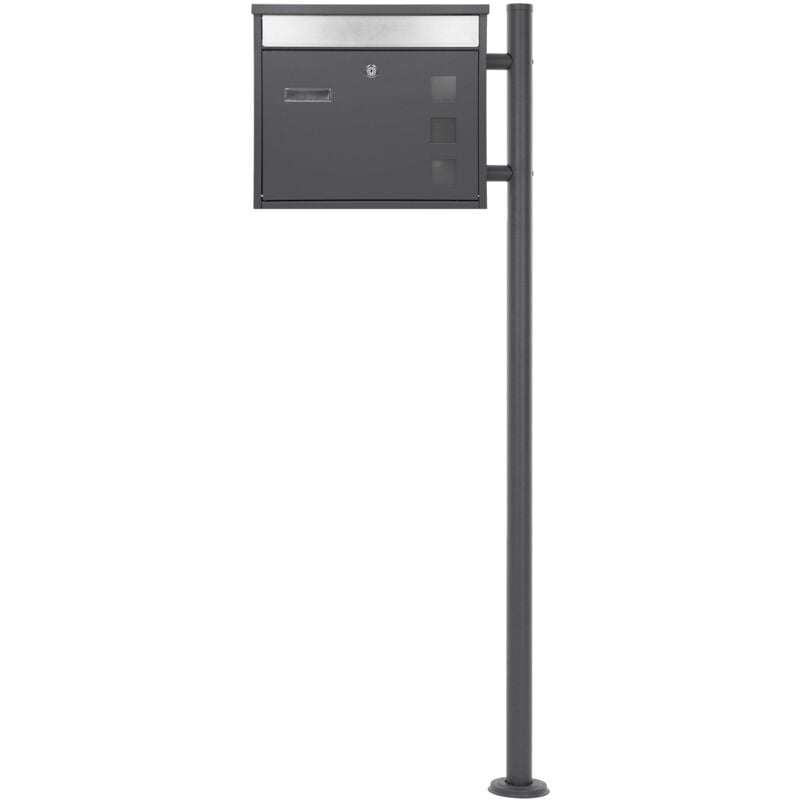 Descrizione: Pratico supporto per cassetta delle lettere. Grazie al supporto per cassetta delle lettere non è necessario forare la facciata della casa. Sono inclusi gli appositi ancoraggi a terra per fissare il supporto della cassetta delle lettere al terreno in modo semplice e veloce. In questo modo non avrete problemi di fissaggio. Il supporto per cassetta delle lettere è realizzato in acciaio di alta qualità e ben costruito, il che lo rende molto resistente. L'acciaio inossidabile verniciato a polvere è resistente al vento, alle intemperie e alla ruggine. La posta è conservata in modo sicuro in questa moderna cassetta per le lettere. La vostra posta sarà mantenuta asciutta e pulita in questa cassetta per le lettere. Grazie all'inserto, protetto da uno sportello a chiusura totale, né l'umidità né la sporcizia possono penetrare nella cassetta postale. La cassetta postale è inoltre dotata di una serratura a cilindro. Questa cassetta postale non convince solo per le sue funzioni, ma