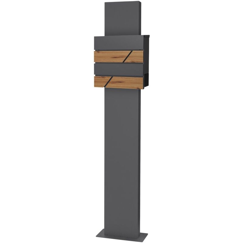 Descrizione: Cassetta postale con design moderno e scomparto per i giornali. La vostra posta è conservata in modo sicuro in questa moderna cassetta per le lettere. In futuro, la vostra posta sarà mantenuta asciutta e pulita in questa cassetta per le lettere. Grazie all'inserto protetto dallo sportello a chiusura totale, né l'umidità né lo sporco possono entrare nella cassetta postale. Inoltre, la cassetta postale si chiude con una serratura a cilindro. Questa cassetta per le lettere non contiene solo la posta, ma anche i giornali, che possono essere riposti nello scomparto integrato per i giornali. Questa cassetta postale non convince solo per le sue funzioni, ma anche per il suo particolare frontale in aspetto di legno. La cassetta postale è realizzata in acciaio zincato e verniciato a polvere ed è resistente alle intemperie. La serratura si trova al riparo dalla pioggia sotto lo sportello di accesso. In acciaio verniciato a polvere - Questo rivestimento di alta qualità è