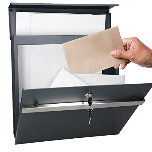 ECD Germany Cassetta Postale Design Moderno da Parete Muro - 37x11x36,5 cm - in Acciaio Verniciato a Polvere Posta con Porta-Giornale Cassetta delle Lettere con 2 Chiavi incl. Materiale di Montaggio