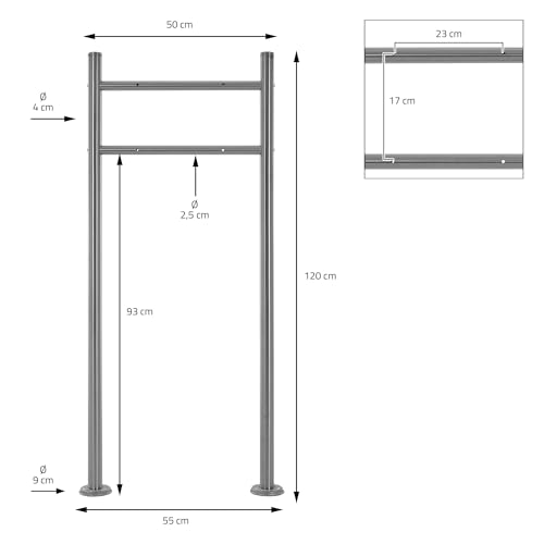 MONTAGGIO FACILE - Il montaggio è molto semplice. Il supporto per cassetta delle lettere in acciaio inox è alto ca. 120 cm e può essere ancorato direttamente al pavimento tramite le viti in dotazione.