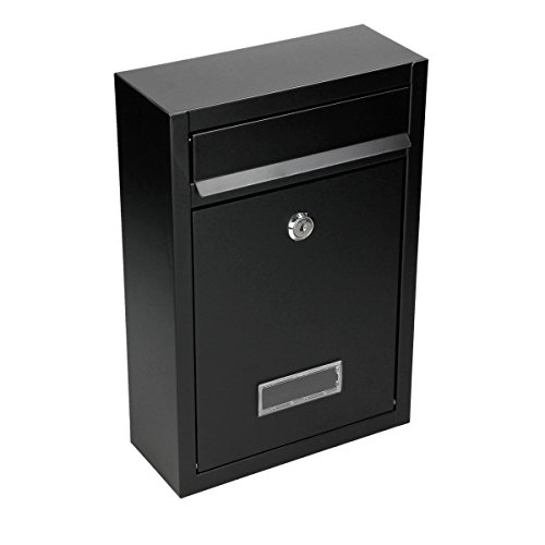 ECD Germany Cassetta Postale da Parete - 21,5 x 9 x 32 cm - in Acciaio Inox - Buca Lettere da Esterno con Finestra Portagiornale Casella Posta con Chiusura a Chiave e Materiale di Montaggio Nero