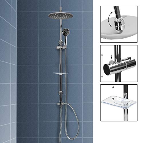 ECD Germany Set Doccia in Acciaio Inossidabile Soffione Rotondo a Pioggia con Ugelli Anticalcare Ø 220 mm Colonna Doccia Finitura Cromata con Doccetta e Materiale di Montaggio