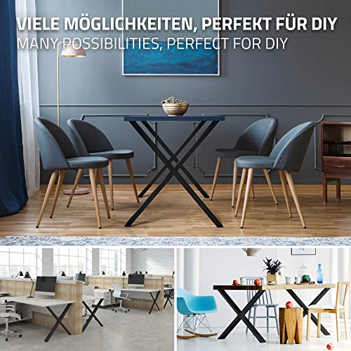 ECD Germany Gambe Tavolo 2 Pezzi Struttura Tavolo a Forma di X 60 x 72 cm in Acciaio Verniciato a Polvere Nero Telaio da Tavolo Design Industriale Gambe per Tavolo Telaio ad A Gambe Industriali