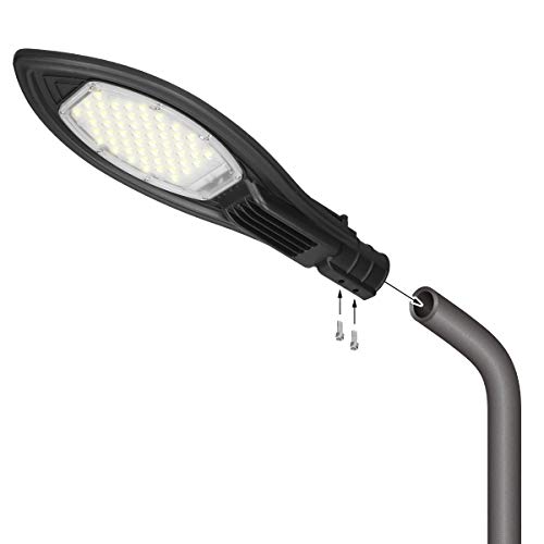 ECD Germany Lampione Stradale a LED 50W AC85-265V Bianco Freddo 6000K Impermeabile IP66 per Giardino/Cortile/Strada Illuminazione Stradale a LED Lampione Stradale da Esterno 50 W Lampada LED IP66