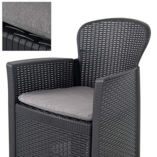 ECD Germany Set 3 Mobili da Giardino 2 Posti Set di Mobili da Giardino 2X Poltrone con Cuscini di Seduta e 1x Tavolo Grafite in Simil Rattan Plastica Design Moderno Mobili per Balcone Terrazza