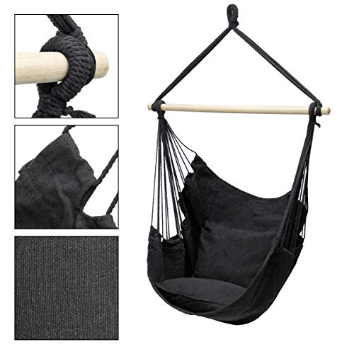 ECD Germany Poltrona Sospesa con 2 Cuscini 90 x 120 x 60 cm Max. 120 kg Antracite Sedia Amaca da Giardino Realizzata in Cotone Barra in Legno Massiccio Interni ed Esterni Campeggio Giardino Terrazzo