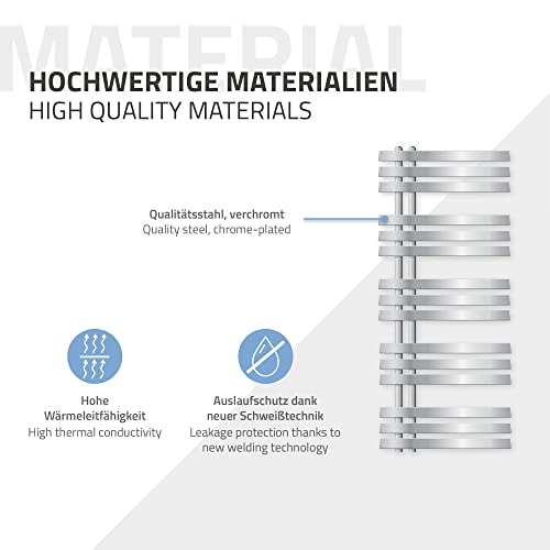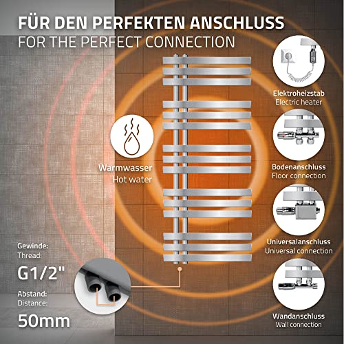 ECD Germany Radiatore da Bagno a Pannello Iron EM Design Scaldasalviette - 500x1200 mm - Cromato - Radiatore Scaldasalviette Asciugabiancheria 500x1200 mm