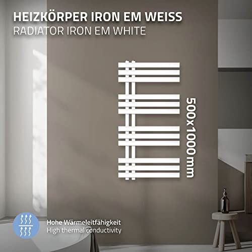 ECD Germany Radiatore da Bagno a Pannello Iron EM Design Scaldasalviette - 500 x 1000 mm - Bianco - Radiatore Scaldasalviette Asciugabiancheria EM Design Bianco Non Elettric