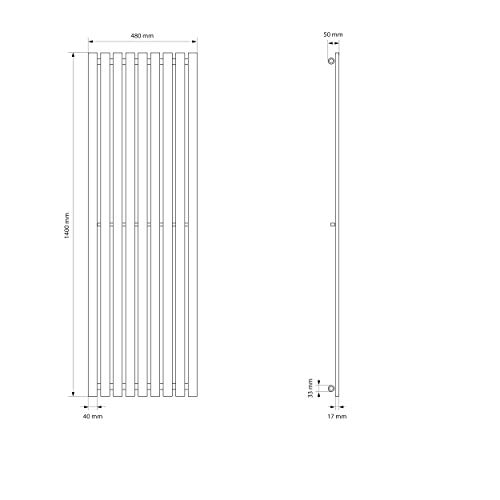 ECD Germany Radiatore Termosifone Termparredo Scaldasalviette Stella Verticale Piatto - 480x1400 mm - Cromato - Radiatore Scaldasalviette Asciugamani da bagno Verticale Piatto 480x1400 mm