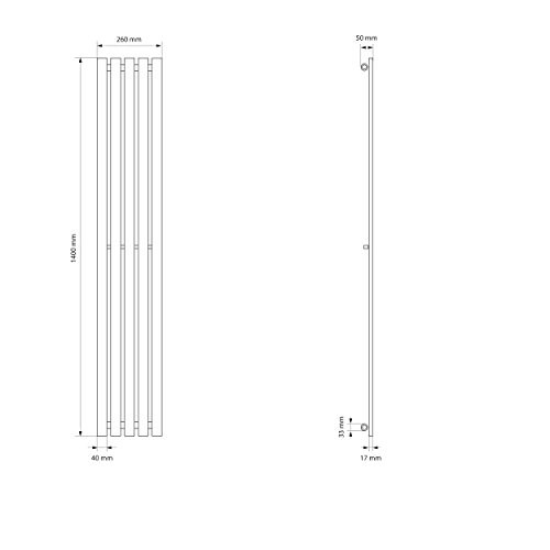 ECD Germany Radiatore Termosifone Termparredo Scaldasalviette Stella - Verticale Piatto - 260 x 1400 mm - Antracite - Radiatore Scaldasalviette Asciugamani da Bagno Verticale Piatto
