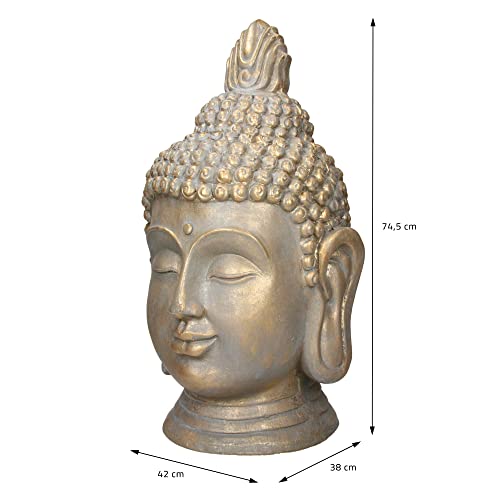 ECD Germany Statua Testa di Buddha 38 x 42 x 74,5 cm - in Poliresina - Aspetto Bronzo - per Yoga, Feng Shui o Meditazione - Casa o Giardino - Figura Decorativa Scultura Ornamentale da Interno Esterno
