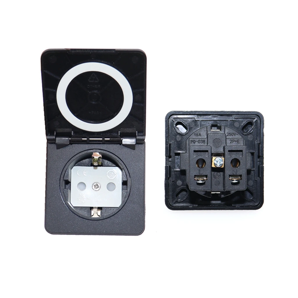 Germany Waterproof Industrial Socket AC Power Socket EU Concealed Plug Electrical Waterproof Cover Power Connector Safety Socket