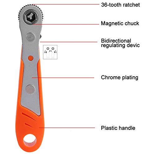 Germerse Chiave a cricchetto, Chiave a Bussola, Utensili manuali per Auto con Punta da Trapano da 1/4 di Pollice, Risparmio di manodopera Biciclette Portatili Antiscivolo Automobili(Orange)