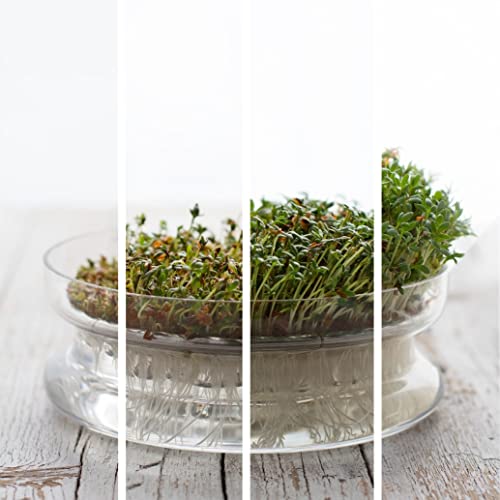 La GERMOGLIERA è il germogliatore che mancava: in vetro, bello da tenere a centro tavola, pratico perchè non va innaffiato tutti i giorni, comportandosi come un germogliatore automatico grazie alla base riempita d'acqua;