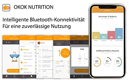 Misurazione precisa della bilancia da cucina digitale: non appena avete installato l'app "OKOK Nutrition". La bilancia da cucina digitale è dotata di quattro sensori di carico integrati ad alta precisione, passi rapidi e precisi e una misurazione più grande da 1 g a 5 kg. Volnems ti aiuta a cucinare, cuocere e monitorare il tuo assorbimento per ridurre il peso.