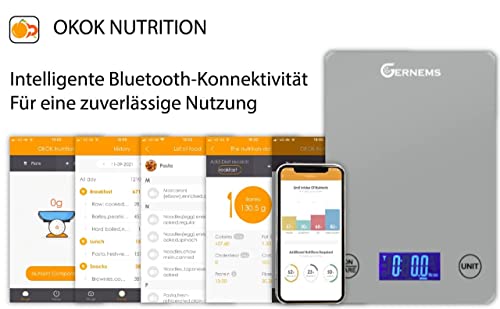 Gernems Smart Bluetooth Bilancia da cucina digitale professionale da cucina con display LCD ad alta precisione (1 g-5 kg), per la cottura e la cottura (grigio)