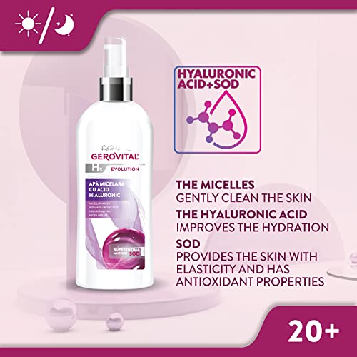Gerovital H3 Evolution, ACQUA MICELLARE CON ACIDO IALURONICO struccante, per tutti i tipi di pelle, 150 ml