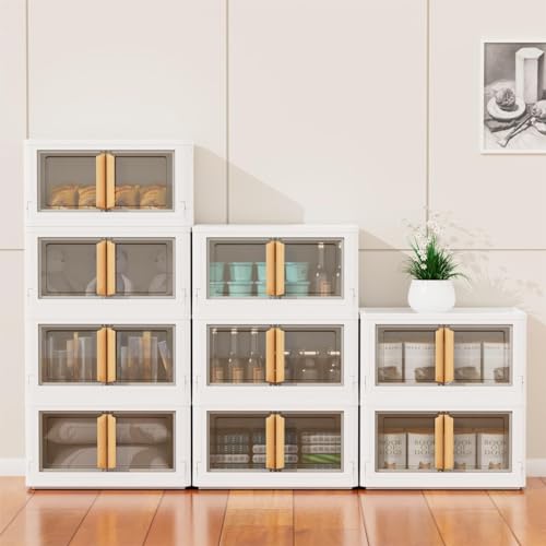 Non c'è bisogno di installare, impilabile e pieghevole: i contenitori bianchi con coperchio sono disponibili in una stazione piatta, basta mettere 4 pannelli e serrarli insieme, e chiudere il coperchio, quindi si potrebbe iniziare a utilizzare questa scatola pieghevole con porte. Non c'è bisogno di strumenti per installarli. Il design a scanalatura sui contenitori impilabili consente loro di impilare senza ribaltarsi. Quando non sono in uso, i contenitori pieghevoli poss