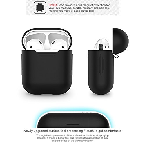 GerTong - Custodia protettiva sottile in silicone per AirPods per custodia di ricarica, copertura completa, antiurto, design per Apple Airpods (nero)