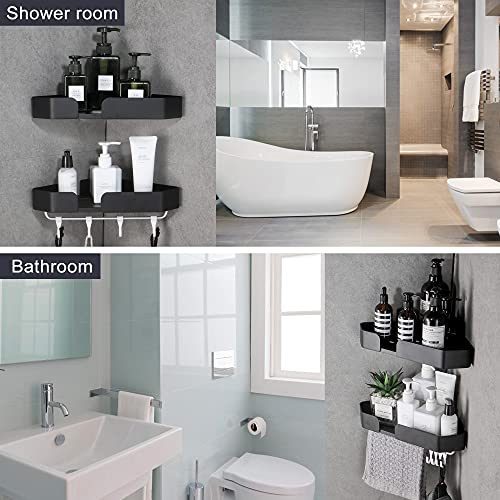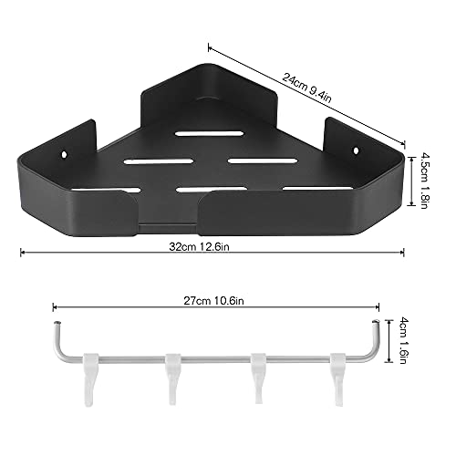 GERUIKE Mensole bagno Con portasciugamani Mensola da Doccia da Angolo, Alluminio Spaziale Mensola Per Doccia Nessuna Foratura Autoadesivo Montato A Muro 2 Pezzi Nero