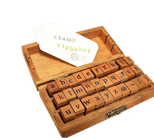 Gespout 30 pezzi Legno Timbri in Gomma Set Box Retro Stile di Rettangolo Lettere Timbro per Regalo Carta Creazioni un Hobby ARTISTA e fai da te Artigianato