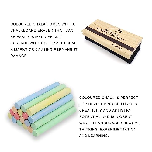 ✏【Facile da Pulire】 Gesso colorato viene fornito con una gomma per lavagna, che può essere facilmente pulita da qualsiasi superficie senza lasciare segni di gesso o causare danni permanenti.
