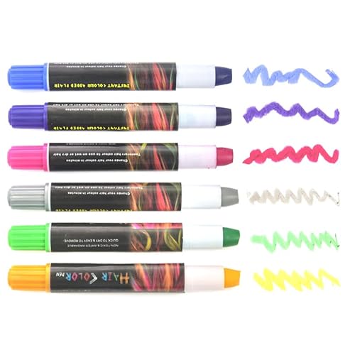 Facile da usare: 6 bastoncini di pennarelli non nocivi per capelli si sciolgono facilmente in acqua. Bagnare leggermente i capelli prima dell'uso, utilizzare il gesso per capelli per pettinare i capelli dall'alto verso il basso e attendere che i capelli si asciughino. La profondità dell'ombreggiatura dipende dall'intensità utilizzata.