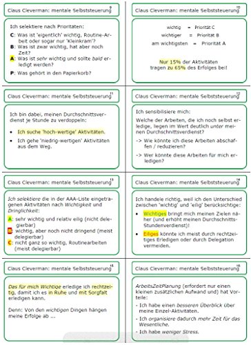 Riceverete 56 carte con auto suggestionen (lato anteriore) Plus citazioni coordinato (schede di memoria retro), per propri Management/interiore manoscritti per un tempo ottimizzato per una migliore organizzazione a 'sovrascrivere'. - queste schede sono il complemento necessaria (e della estratto) sulle furbesche libri e seminari.