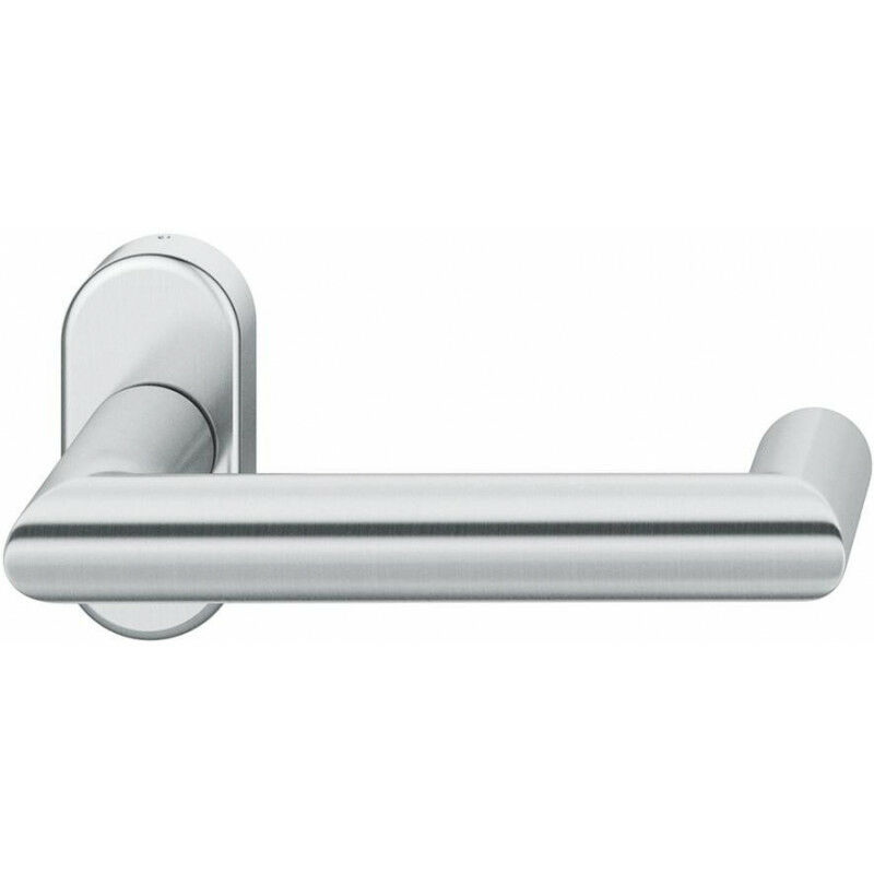 Maniglia a leva per porte profilate parte 09 1016 - Maniglia per porte in acciaio inox - Su rosone ovale - Fissaggio non visibile - Con meccanismo di ritenuta.